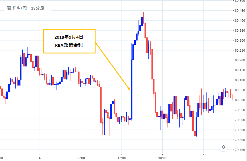 輸出量が多いオーストラリアですが、豪ドル円のボラティリティがもともと高いために指標発表直後でもあまり大きく動くことはありません。