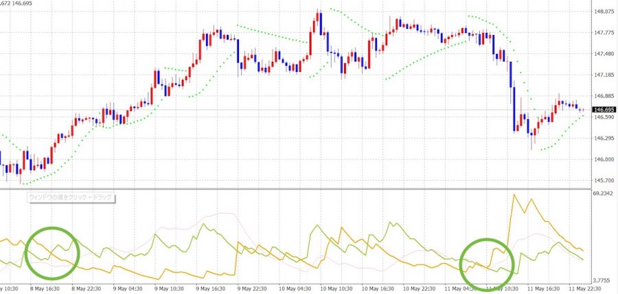 - +DIと-DIの同時逆方向への変化でエントリーまたは決済